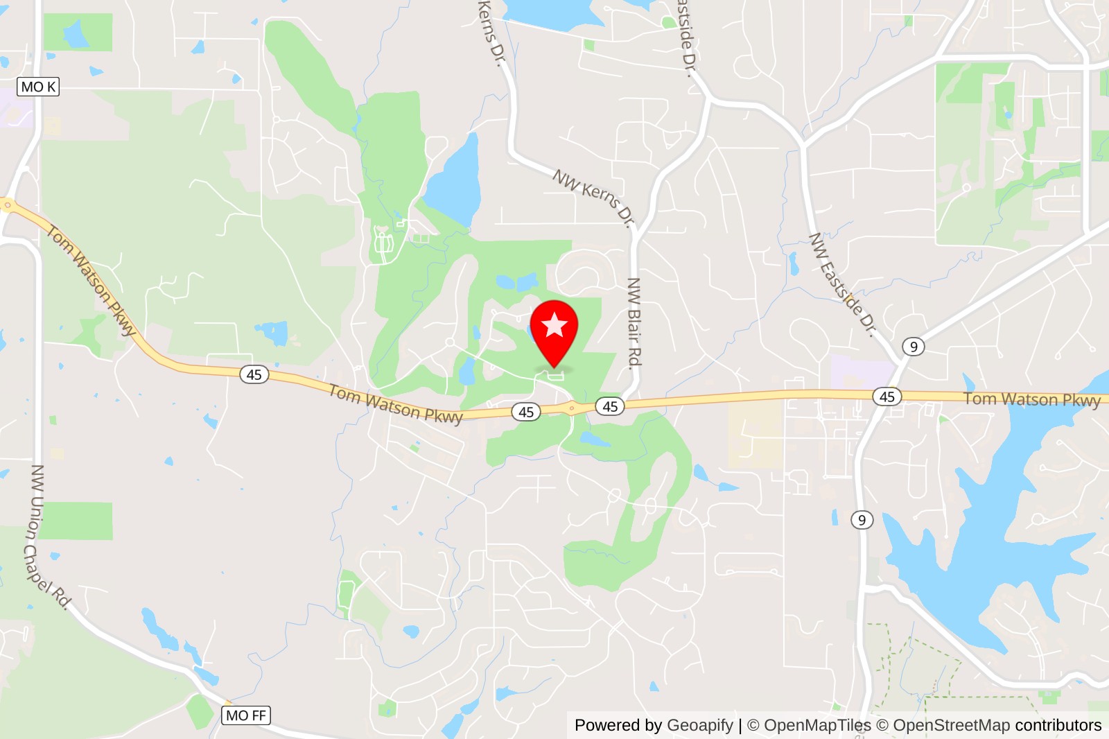 You’ll find the course in the northern Kansas City area, making it convenient for golfers throughout the region.